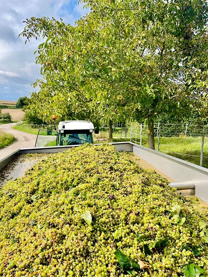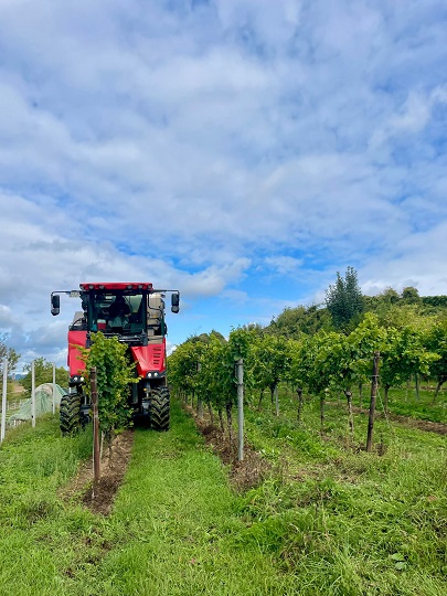 Der Winzer hat uns alles erklärt – und wir konnten die maschinelle Lese live miterleben.