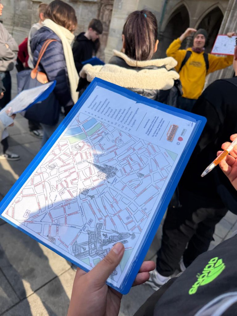 Am vierten Tag unseres Aufenthalts in Wien nahmen wir zuerst an einer Schnitzeljagd teil. In kleinen Gruppen lösten wir verschiedene Aufgaben und Rätsel und erkundeten dabei die Stadt. Die Schnitzeljagd machte viel Spaß und wir konnten Wien noch einmal auf eine andere Weise entdecken.
