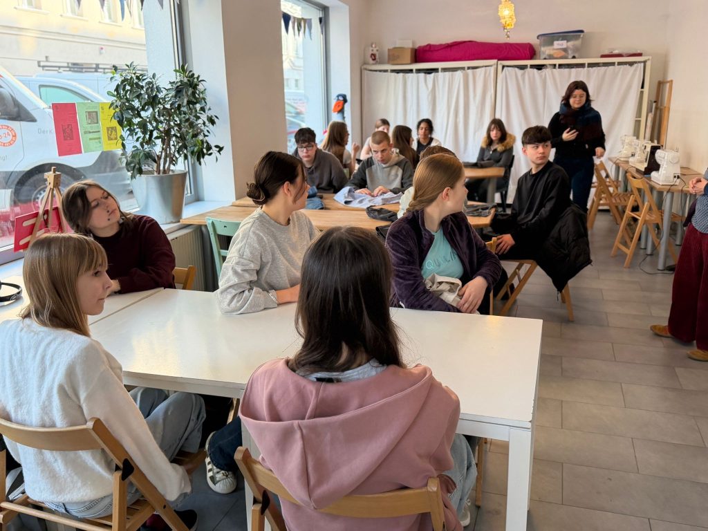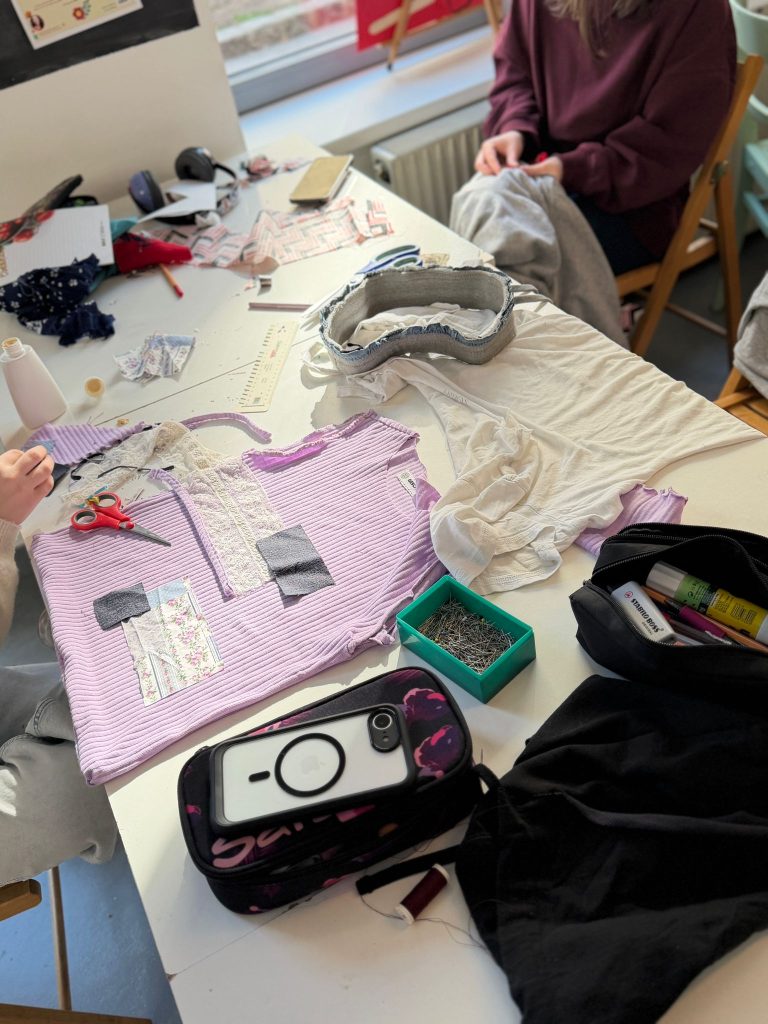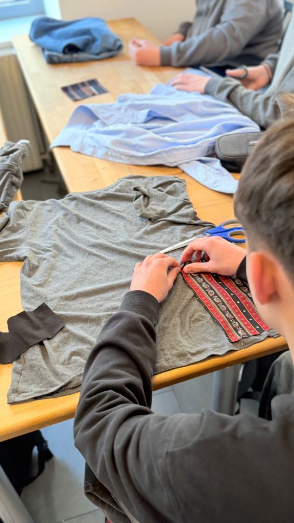 Am Vormittag nahmen wir an einem Upcycling-Workshop beim Recycling Kosmos teil. Dort lernten wir, wie aus alten Materialien neue Produkte entstehen können. Wir arbeiteten kreativ mit verschiedenen Stoffen und gestalteten eigene Kleidungsstücke aus wiederverwendeten Materialien.