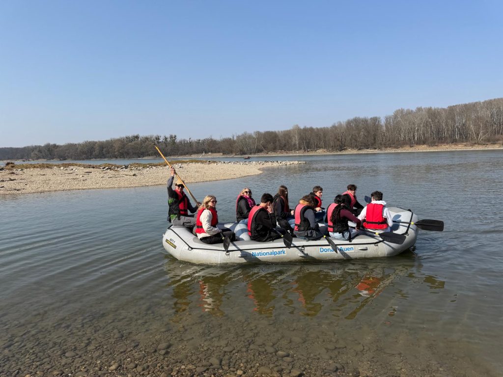 Am dritten Tag unseres Aufenthalts besuchten wir den Naturpark Donauauen. Dort konnten wir die Natur und die besondere Landschaft entlang der Donau kennenlernen. Ein besonderes Erlebnis war das Schlauchbootfahren auf dem Wasser. In kleinen Gruppen fuhren wir durch 11 Kilometer auf der Donau und konnten so die Umgebung aus einer ganz neuen Perspektive erleben. Währenddessen begleitete uns ein Ranger des Naturparks. Er erklärte uns viel über die Tiere und Pflanzen, die in den Donauauen leben. Wir erfuhren zum Beispiel, welche Vogelarten dort vorkommen und warum dieses Gebiet für viele Tiere ein wichtiger Lebensraum ist. Der Ausflug war sehr spannend und hat uns gezeigt, wie wichtig der Schutz solcher Naturgebiete ist. Außerdem hat es viel Spaß gemacht, die Natur einmal so direkt zu erleben.