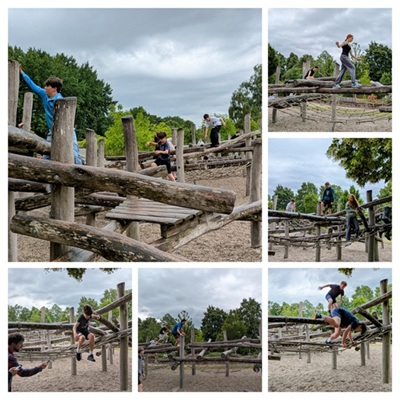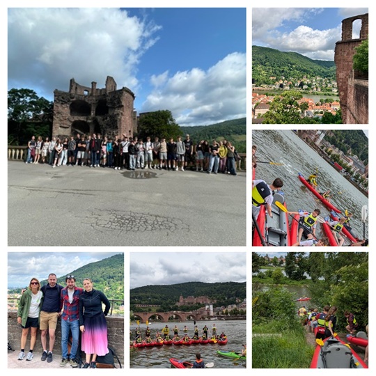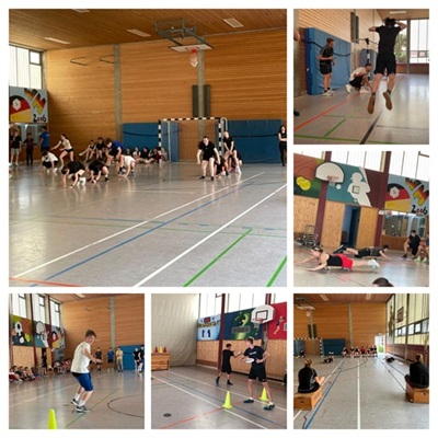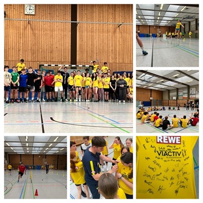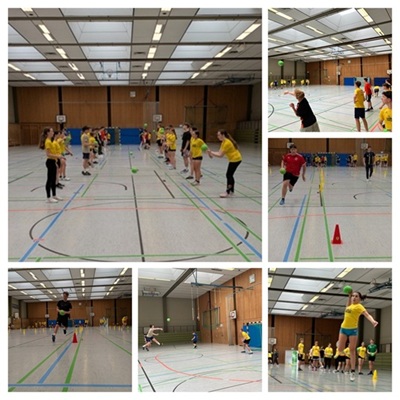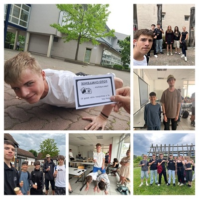 Nun galt es in der Woche vom 2.- 6. Juni in Herxheim weitere Meilen zu sammeln, um die anderen Teams auf der Reise um die Welt abzuhängen. Das sportlich-kulturelle Programm, das Frau Steinhauser und Frau Weigel zusammengestellt hatten, forderte auch in diesem Jahr einiges von den Teilnehmern: Foto-Challenge, Herxheim-Ralley, Herstellung von Rollagen mit Motiven passend zum Projekt, Völkerballturnier, Handballtraining mit einem Profi der Rhein-Neckar-Löwen, AllaHopp-Hindernisparcours, Kayaktour in Heidelberg und Fünfkampf mit außergewöhnlichen Disziplinen wie Frisbeezielschießen, Rückwärtsstaffellauf, Standweitsprung, „Rollbrett-Push’n’-Pull“ und Menschenhürdensprungstaffel.