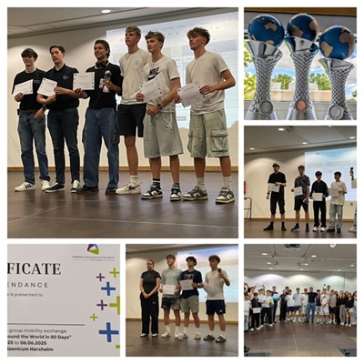 Als wir uns im Oktober 2024 auf den Weg nach Tschechien machten, um mit unserer Partnerschule Sportovni Gymnazium Kladno in internationalen Teams im Literatur-Sport-Projekt “Around the World in 80 Days” die Reise um die Welt anzutreten, war noch ungewiss, wie erfolgreich wir diese im Juni 2025 beenden würden – schließlich standen uns statt der 80 nur 8 Tage, vier in Kladno und vier in Herxheim, zur Verfügung.