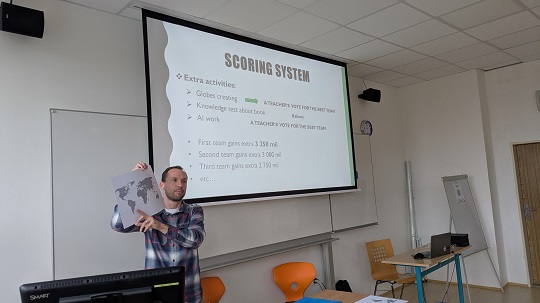 In diesem von Erasmus+ geförderten, aber v.a. eigens initiierten Sport-Literatur-Projekt geht es darum, in internationalen Teams sowohl sportliche als auch passend zu Jules Vernes Lektüre „Around the World in 80 Days“ literarische, künstlerische und kulturelle Aufgaben zu meistern und damit Punkte bzw. Meilen zu sammeln, um so die Reise um die Welt zu meistern.