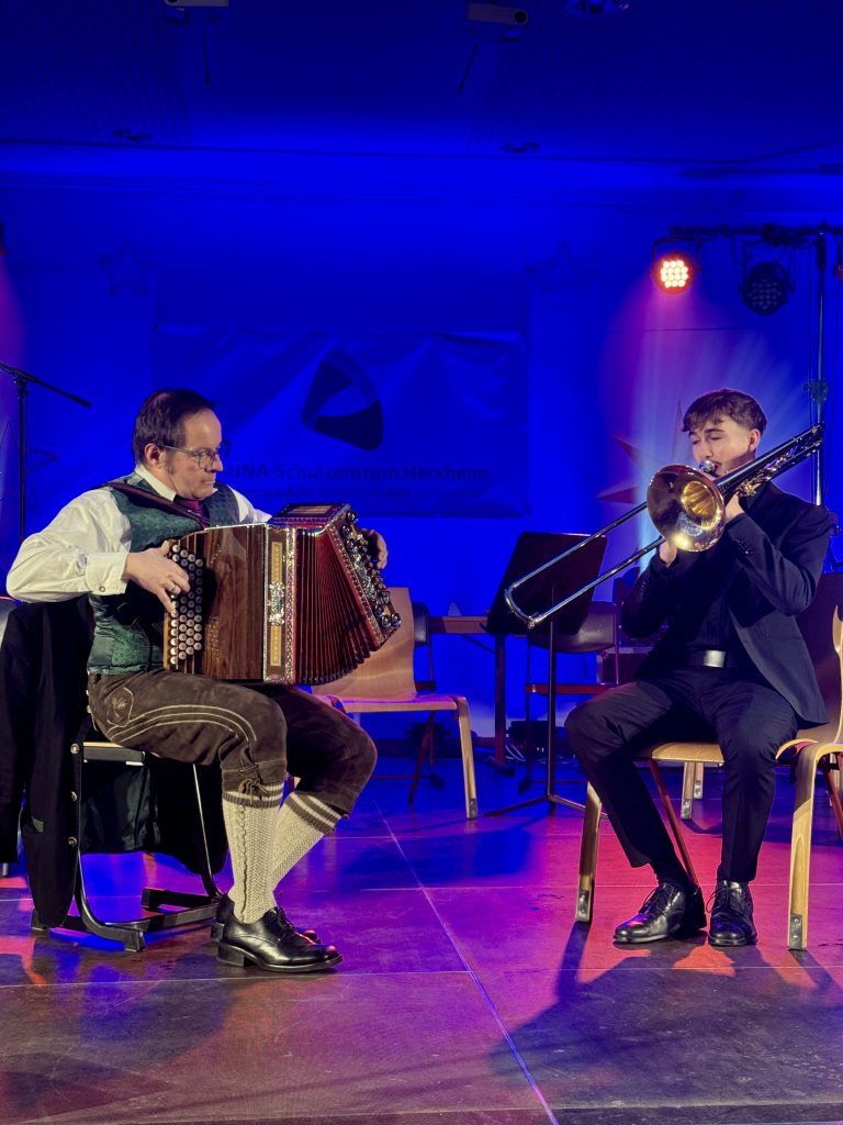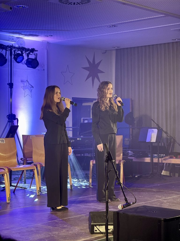 Am vorletzten Schultag war die Aula um 19 Uhr voll. Es gab ein umfangreiches und sehr abwechslungs- reiches Programm zu sehen, das von den Musiklehrerinnen und -lehrern des Schulzentrums zusammen mit Schülerinnen und Schülern aus allen Stufen und Schularten auf die Beine gestellt wurde. Von Or- chestermusik über Gesang und Klavierstücken bis hin zu einer „etwas“ härteren Version von „Last Christ- mas“ und Alpenmusik an Akkordeon und Posaune war alles dabei. Ein emotionaler Moment erwartete die Zuschauenden kurz nach der Pause, als sich Claudia Müller als Leiterin des Schulorchesters aus Zeit- gründen verabschiedete und den Taktstock an Margarete Chapman übergab.